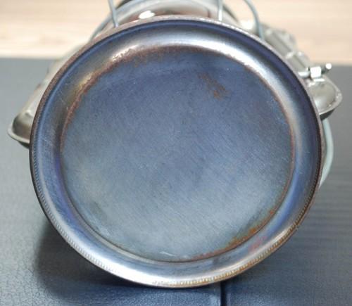 | 備考: | 流通量が少ない希少カラー(シルバー)希少品です。錆や、燃焼跡(煤)黒い汚れ・使用に依るキズ・小さな凹み等が見られますが、フレームもしっかりとして年代の割には概ね良いコンディションです。 パーツは全て当時のオリジナルで、クリアグローブはアメリカ「Hocking Glass社製」コメット用エンボス入りのビンテージです。(全ての稼働個所は正常に動作し点灯良好です) ※右サイドエアチューブ(アーム)の刻印から「S-1-51」1951年1月シラキュース製と思われます。(シラキュース は、アメリカ合衆国ニューヨーク州中央部に位置する商工業都市で、デイツ社の自社工場がありました。現在は本部を香港に置き、製造は中国本土の工場です) 【DIETZ COMET Cold Blast Lantern】 ・サイズ:ボトム径約11cm×高さ約21cm ・芯サイズ:平3分芯(9mm) ・燃料:灯油・パラフィンオイル(推奨) ・製造国:アメリカ ※画像に撮影時のライトの映り込みが見えますが、キズ等ではありません。 |