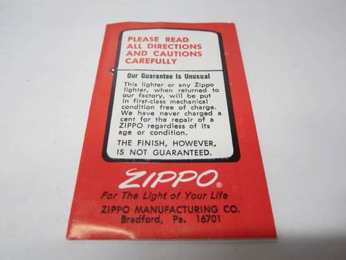 1960年代後半~1970年代前半(旧ロゴ) ギャランティー・カード 【ZIPPO】