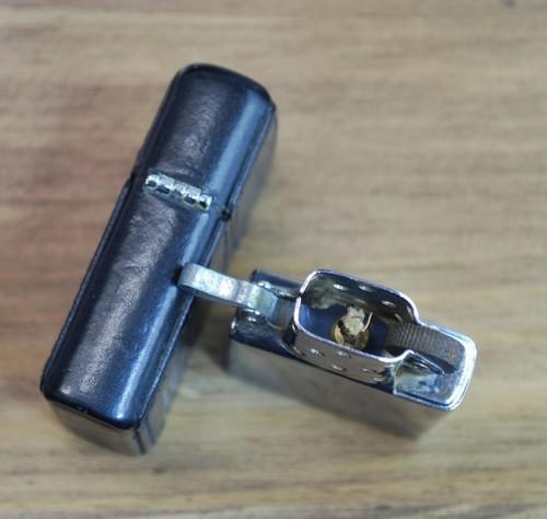 | 備考: | ケースの幅が、ジッポー社オリジナルより若干小さいので、ジッポー社製インサートが入りません。(本品のインサートにオイルを入れ試着火してみましたが、スムーズに着火したのでオイルライターとしての機能には、問題は無いようです) 本品のケース・サイズは革巻き分を含めて、58×39×16.5mmです。(サイズ感的には、革巻きでは無い「レギュラーサイズ」のジッポーと殆ど同じで、革巻きの分だけ4mm程厚みがあるので、私感ですが手に馴染み小さく可愛く感じます) |