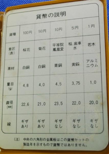 | 詳細: | 1円~100円貨幣(通貨)の5枚セットです。(中央の六角形の金属板は、この貨幣セットの製造年を示すもので貨幣ではありません) MINT BUREAU MINISTRY FINANCE JAPAN |