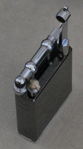 | 詳細: | クラシック調のライタートップが特徴のコリント式ライター。着火口に伸びるメタルバーを押すとバーが跳ね上がりローラーを回して着火させるようになっています。 |