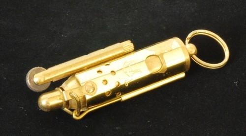 | 詳細: | ネバダ・トレンチライターの使い方:外側部分を指で押さえたまま、一方の手で「金属の輪」を引きキャップを開き、ローラーを廻して着火します。 |
