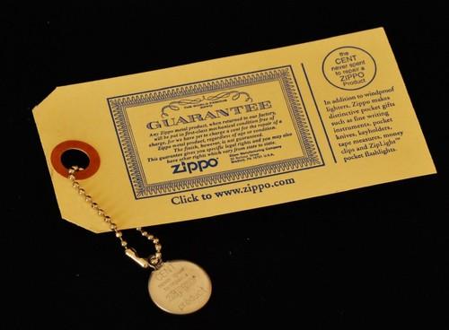 | 備考: | ラッキーペニーとは、ジッポー社製のライターや他の製品に対する「無料修理」を宣伝する為に配られたキーチェーン。「1セントも取らない」と云う意味を込めて、1セント硬貨が収められています。(硬貨は2000年) |