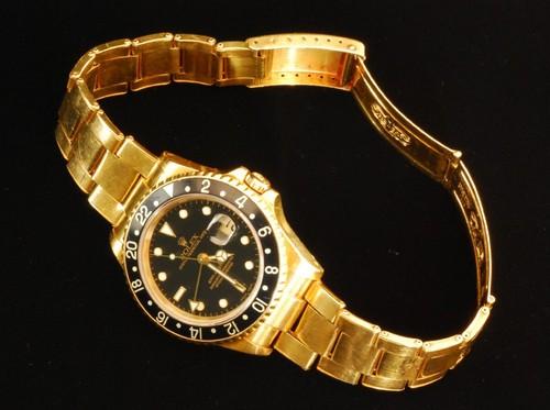 | 備考: | ムーブメントは機械式(自動巻き・クロノメーター)、キャリバー(Cal.3185)、GMT機能(GMT針&24時間両方向回転ベゼル)、デイジャスト機構(クイックチェンジ機能なし)、防水性能(10気圧・100m)、パワーリザーブ(約48時間)。 オイスターケースは直径(40mm)厚み(12.8mm)、風防(サファイアクリスタル)、文字盤(ブラック・数字なし・縁ありインデックス)、素材(18Kイエローゴールド)。 ブレスは3連リベットタイプ(空洞)、バックル(片開き式)、素材(18Kイエローゴールド)。また3針・インデックス共に縁の素材は(18Kイエローゴールド)で、個体の総重量は147gです。 GMTマスターとGMTマスターⅡの主な違いは、ムーブメントの性能面です。GMTマスターⅡには「短針単独稼働」を備えられ、この機能差がそのまま「GMTマスター」と「GMTマスターⅡ」の違いとなりました。GMTマスターⅡは短針を単独で動かせる為、タイムゾーン表示を最大3か所まで表示することが可能になりました。 GMT (Greeniwich Mean Time:グリニッジ標準時) 機能の目的とは、GMT針と24時間回転ベゼルを使い「今、自分がいる国(都市)以外の時刻を知る」ことです。いわゆる第2時間帯(タイムゾーン)について知りたい場合、それを簡易的に把握する手段として「時差」というシステムを利用する機能です。 |