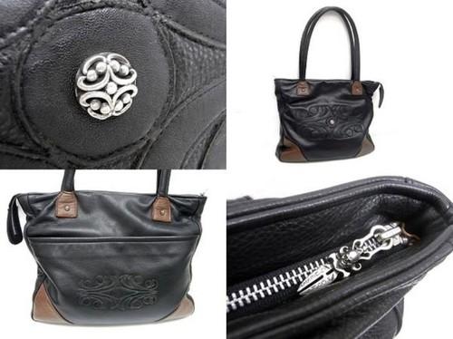 | 備考: | 軽度の使用品で特筆するダメージも無く美品です。(サイズ:W 約35cmX H 約31cmX D 約5cm・ハンドル 約62cm) ※ポケット仕様 ・背面:ポケット(深さ:約20.5cm) ・内側:ジッパー付きポケット(開き口:約24.0cmX 深さ:約15.0cm) ・内側:ポケットX2ヶ所(開き口:約14.0cm X 深さ:約14.0cm) ※シルバーパーツ ・オリジナルリベットX1個 ・ジッパーブル/ダガーX1個 ・オリジナル・スモールリベットX4個 ※カラー ・ブラック&ブラウン ※素材 ・レザー&スターリングシルバー ※その他 ・付属品:なし ・参考価格:226.800円 |