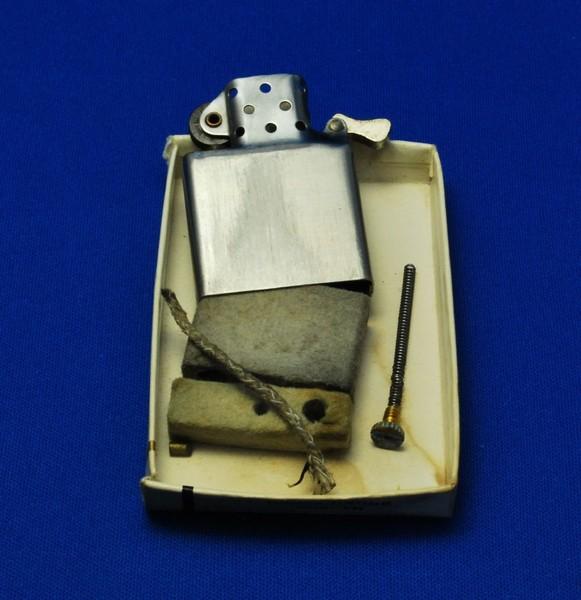 | 詳細: | インサートの刻印を読むと「1957~58年製」ケースのボトム刻印を読むと、打痕が多く読みずらいのですが、、、多分1960年代の製造と思われます。 フリント・ホイールのスパークが弱いのか、スムーズに着火しないので「インサート」の中身を確認すると、1968~1972年頃に使われていたと云う「豆腐フエルト」が入っていて、ウイックも痩せて短く「オイル」が染み込みずらい状態でした。 豆腐フェルトの代わりにコットン・ボールを詰め、新しいウイックに変え「オイル」を注入して、フリント・ホイールを回すと、、、調子がいいと1回で、悪くても3回位で着火できる様になりました。 |