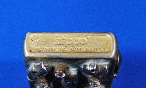 | 備考: | 2010年製のケースに、6個のスカルと6個の宝石?が付いています。 商品コード#366 の作品を最後に、ニック・パル氏はチョッパー・ジッポーを制作しないそうです。(プレミア価格になる期待大!!) |