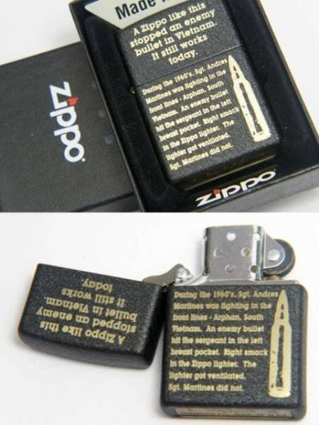 | 詳細: | 弾丸にも耐え、人命を救ったZippo 社蔵出しエピソード 耐風性に代表される機能、どんなに厳しい条件下でも着火し、滅多に壊れることのない信頼性、優れたデザイン、、、Zippo は、それを持つ人々に様々な価値を提供し続けてきた。これまでに5億個以上のZippo が製造され、愛用者は世界中に広がっているが、一部の幸運な人々には、それを遥かに凌駕する計り知れない価値をもたらした。 Zippo が銃弾を防ぎ、彼らの命を救ったのである。(コメントはジッポーコレクション第17号より転載させて頂きました) |
