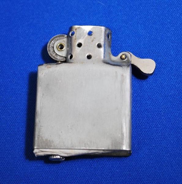 | 備考: | 1942年~43年前期、4バレル・ヒンジ、14穴チムニー、水平歯フリントホイール(面取り無し)、ダルマカム、波状スプリング、小型フリント・スクリュー(スチール製)、タバコフィルター型オイル止(2本タイプ)、インサイド・ユニット(刻印無し)、ケースの黒い塗装(ブラッククラッケル)は全部剥がされています。(フルオリジナル) |