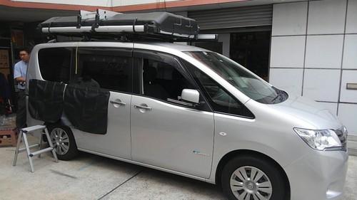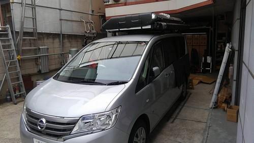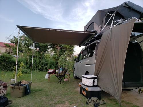 | 備考: | 全長225㎝x幅130㎝(ベースフレーム部分のサイズ)の高さ31㎝(ハシゴを入れた高さ33㎝)、重量は約63㎏、室内サイズは幅120㎝x長さ200㎝(展開時の内部の高さは約85~最高部110㎝)、私の日産セレナに取付て車高を測ったら高い所で225㎝でした。 ルーフテント本体価格は税込み¥410.400 オプション品及びその他(税込み)価格は、サイドオーニング(2.5×2.5m)¥59.980、リアサイクルキャリア(2台用)¥66.960、出入り口用サイドタープ¥12.960、冬用キルティングインナーテント¥12.960、べースキャリア及びサポートキャリア(計3本)¥37.300、ルーフテント盗難防止専用ソケット工具付き¥9.180、手動開閉用エマージェンシーロッド(2本)&工具レス電動ロッド脱着ユニット¥4.860、取付工賃1式¥25.920で合計¥230.120でした。 |